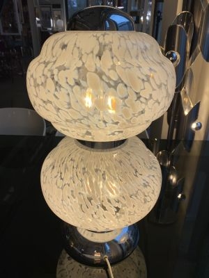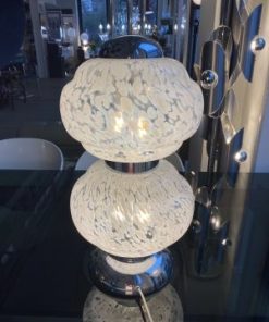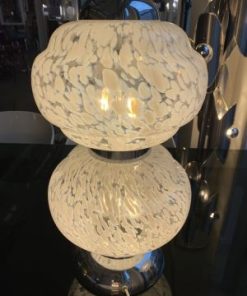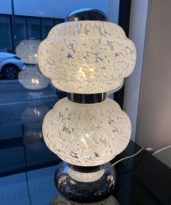 Queste lampade da tavolo rappresentano un raffinato esempio di design italiano degli anni ’60, firmate dal celebre Carlo Nason per Mazzega. La loro forma richiama una clessidra lavorata, unendo armoniosamente estetica e funzionalità.