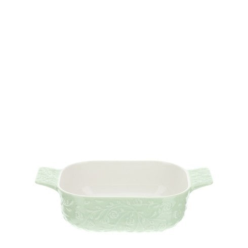 Amplifica la tua esperienza culinaria con la Pirofila in Porcellana della Linea Romance, impreziosita da raffinati decori a roselline in rilievo. Questa pirofila non solo aggiunge funzionalità alla tua cucina, ma anche un tocco di eleganza e romanticismo ai tuoi piatti. Realizzata con cura in porcellana di alta qualità, la pirofila presenta un design raffinato con roselline in rilievo lungo i bordi. Questo elemento decorativo aggiunge un tocco di grazia e femminilità, trasformando la pirofila da un semplice utensile da cucina a un elemento di design.