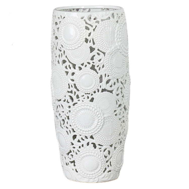 Aggiungi un tocco di eleganza raffinata al tuo ingresso con il nostro meraviglioso Portaombrelli in Ceramica Bianco con Decori Traforati. Questo portaombrelli è realizzato in ceramica di alta qualità e presenta un design traforato che lo rende un vero e proprio pezzo d’arte funzionale. Il colore bianco puro si integra facilmente con qualsiasi stile di arredamento, mentre le sue dimensioni generose permettono di ospitare ombrelli di diverse misure. Ideale per mantenere l’ordine e la pulizia del tuo ingresso, questo portaombrelli unisce bellezza e praticità in un unico prodotto.